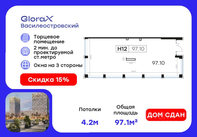 Продается помещение свободного назначения 96,40 в жилом комплексе бизнес-класса Glorax Василеостровский. Проект расположен на намывных территориях Василеостровского района Санкт-Петербурга.