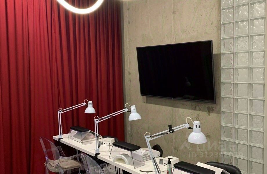 креслами для оказания услуг в 4 руки, зона маникюра на три рабочих места. Одно