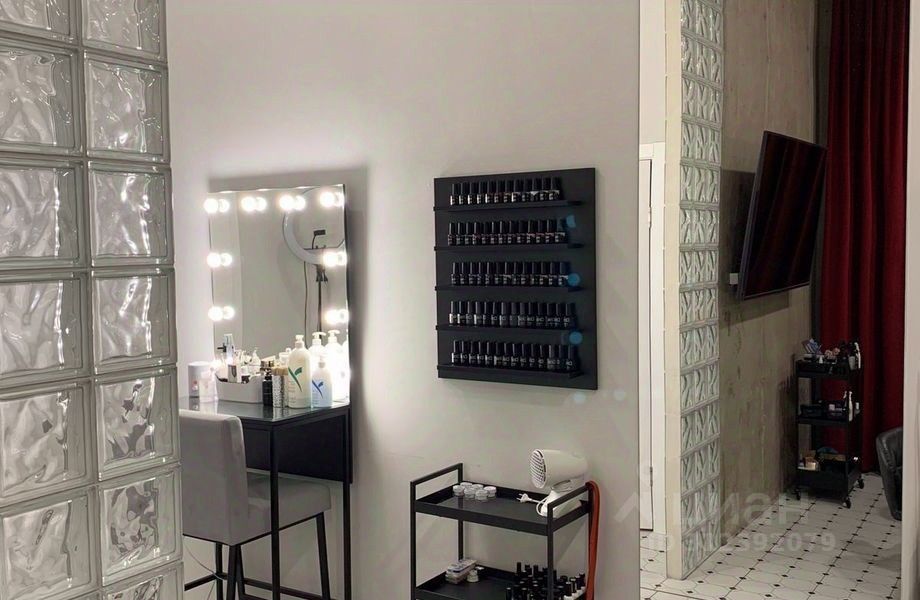 основном зале расположены зоны ресепшн с витринами, зона педикюра с двумя