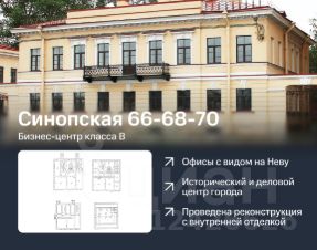 Предлагается к продаже комплекс зданий площадью от 1 930,5 до 6 008,5 м², расположенный на Синопской набережной, д. 66-68-70 (класс В). В зданиях проведены реконструкция и капитальный ремонт, включая внутренние отделочные работы.