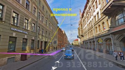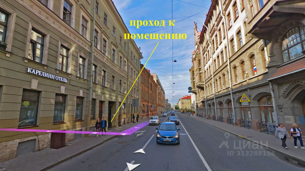 Проход к помещению через калитку с Вознесенского проспекта. При входе достроена антресоль. Объект находится прямо у автобусной остановки. Рядом с объектом расположены Мариинский театр, Никольский Морской собор, Никольский сад, НИУ ВШЭ, множество отелей, развитая инфраструктура.