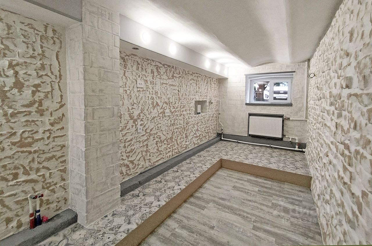 Помещение расположено на цокольном этаже трехэтажного кирпичного дома.