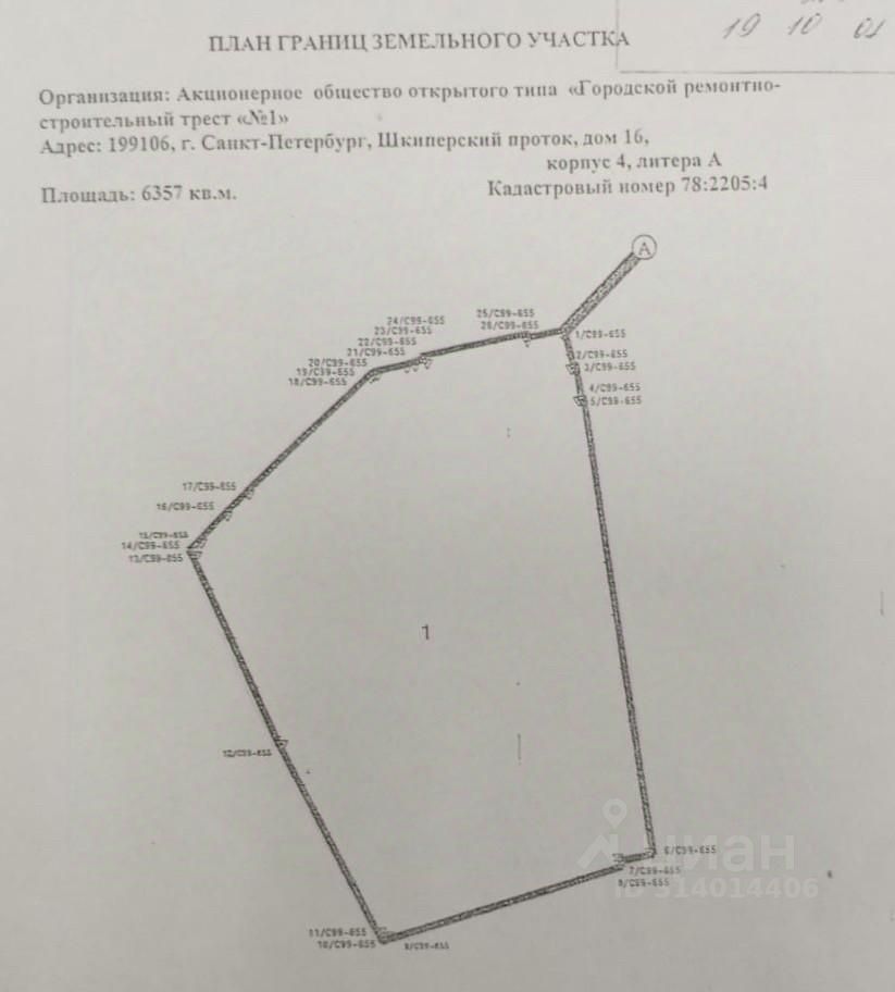 В продаже участок расположенный на Шкиперском протоке д.16к4