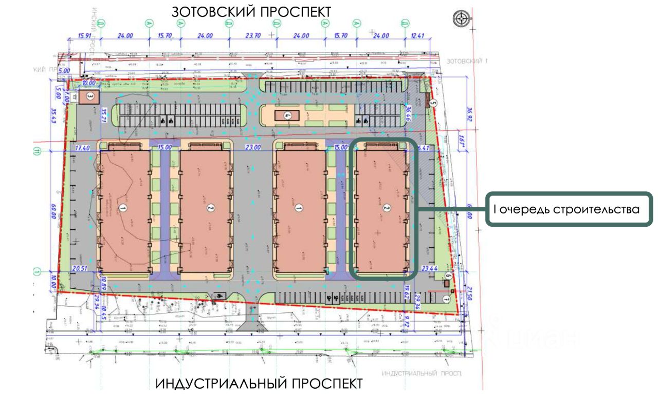 Стоянка для легковых автомобилей - 40 мест на каждый блок