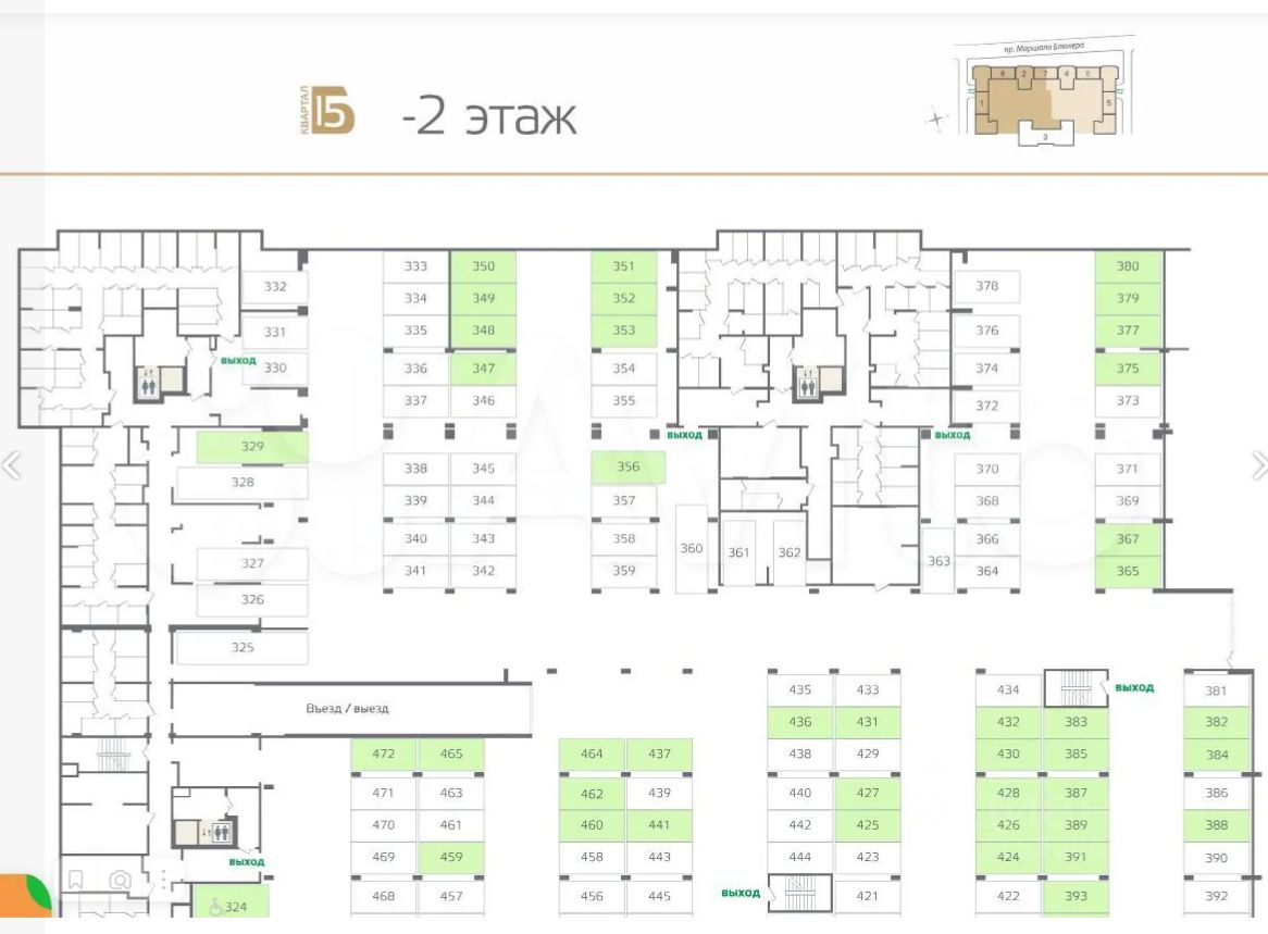 родам подземный паркинг на -2 этаже под 1м корпусом в ЖК Б15, срок сдачи 2 кв.2026 г. Часть оплаты (~300 тр) возможна в рассрочку ежеквартальными платежами по ~60тр до мая 2026 г.