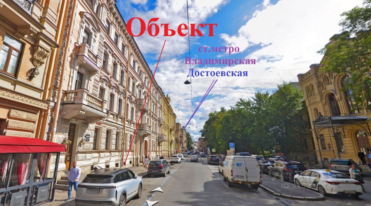 Помещение расположено в Центральном районе, в 7 минутах пешком от ст. метро Достоевская/Владимирская.