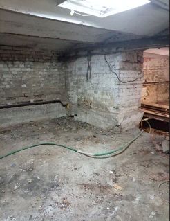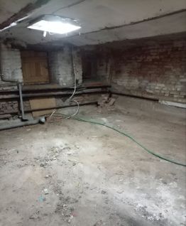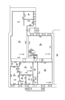 Высота потолков 2,8м в фасадной части помещения (92 квм примерно, использовалась под офис) и 2,13 см в дворовой части (отсеки 50 и 80 квм примерно, использовались под склад).
