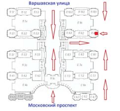 Отдельный вход на три помещения. Удобный доступ как с Московского проспекта, так и с Варшавской улицы.