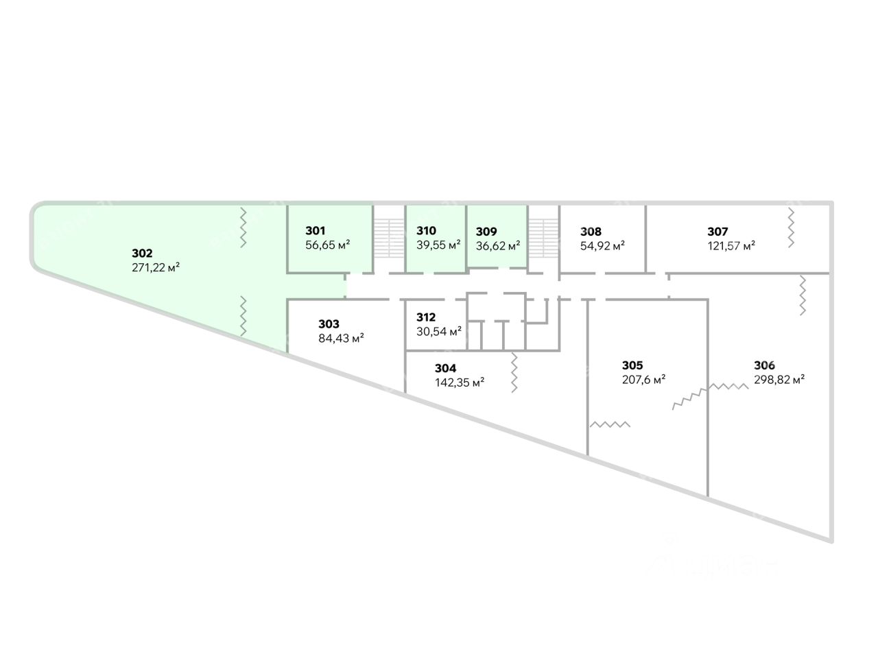 - Размер типового этажа: 1562;