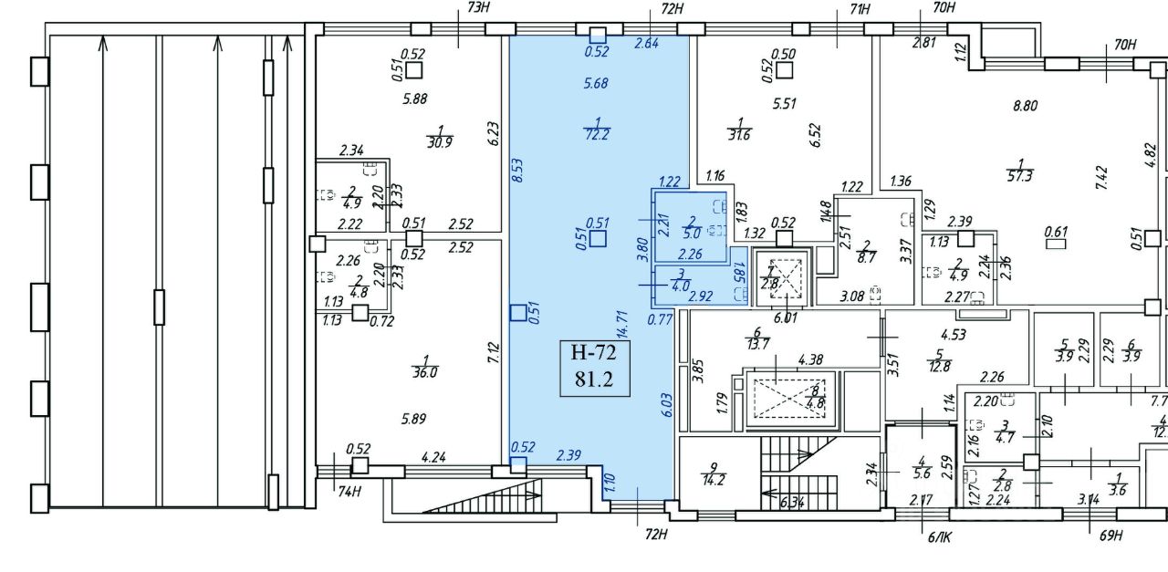 Помещение свободного назначения класса "бизнес" 81.2 м² в ЖК "iD Murino II" с выдержанными фасадами и превосходным витражным остеклением и современной инженерией. Каждому коммерческому помещению выделена зона для стилизованной вывески. Каждое помещение оборудовано индивидуальным вентиляционным каналом. Высота потолков 4,5 метра. Выделенная мощность 0,2 КВт на 1 метр квадратный.