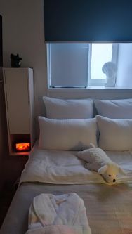 - Вся мебель и техника (кровать парящая, кухонная мебель и оборудование, ТВ, стиральная машина, холодильник, бойлер, постельное белье, полотенца и даже халаты для гостей).