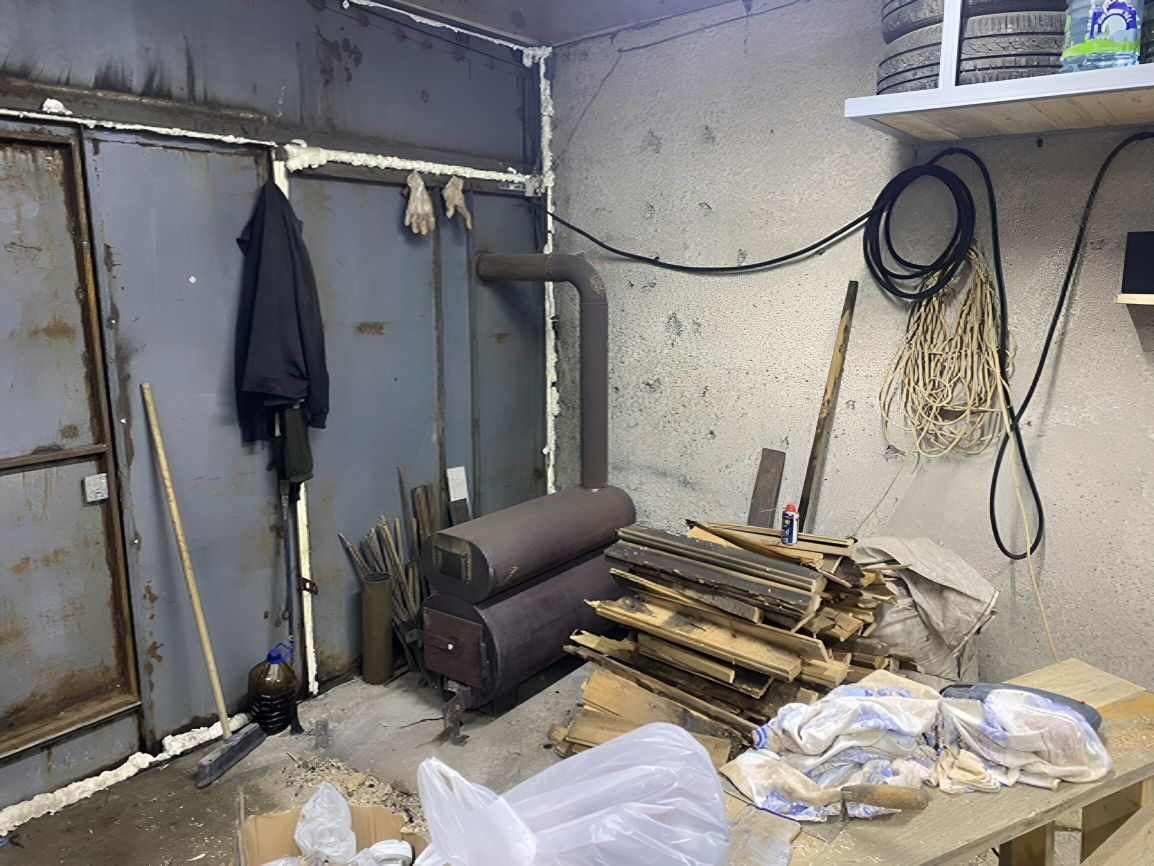 6*6 печка, полки, верстак, пол залит, новая проводка, ворота утеплены.