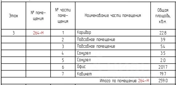 В продаже помещение 117-Н(а) площадью 259 кв.м. План в объявлении.