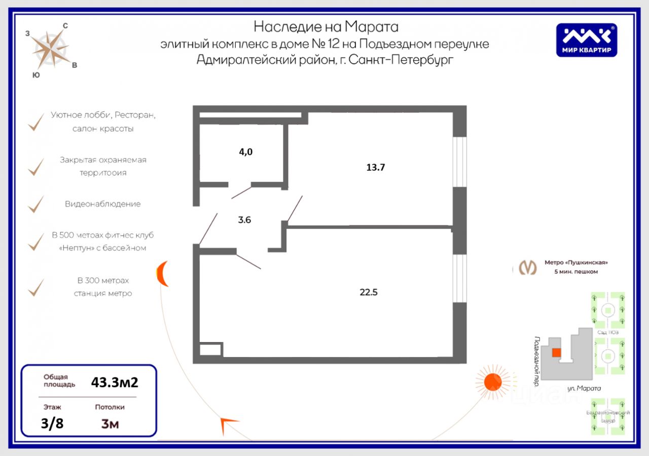 Арт. 106545960 В устье улицы Марата, ранее именуемой Преображенской, на пересечении с Подъездным переулком, в окружении скверов построен новое респектабельное нежилое здание - "Наследие на Марата".