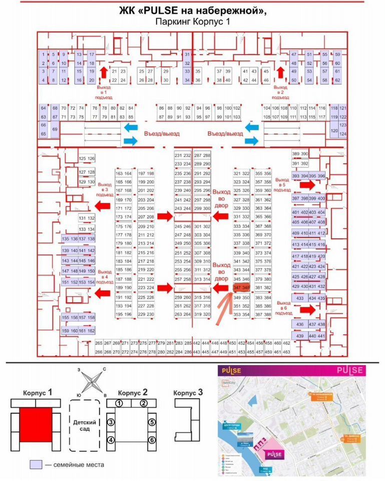 Продается машино-место в подземном паркинге ЖК Пульс на Набережной! Место 347 рядом с колонной, что позволяет широко открывать водительскую дверь!