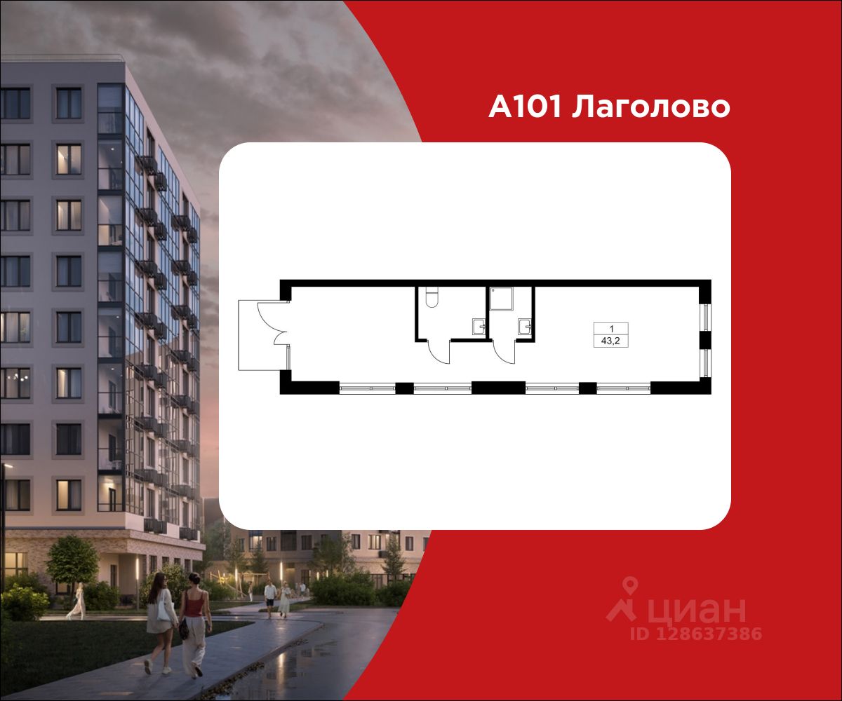 Продажа торгового помещения 43.20 м² в ЖК "А101 Лаголово" от застройщика. Опция "готовый арендный бизнес". Рассрочка на 12 мес. В 2025 году сдается первая очередь на 5.000 жителей. Дом 1.3-1, будет заселен в 2026 году.