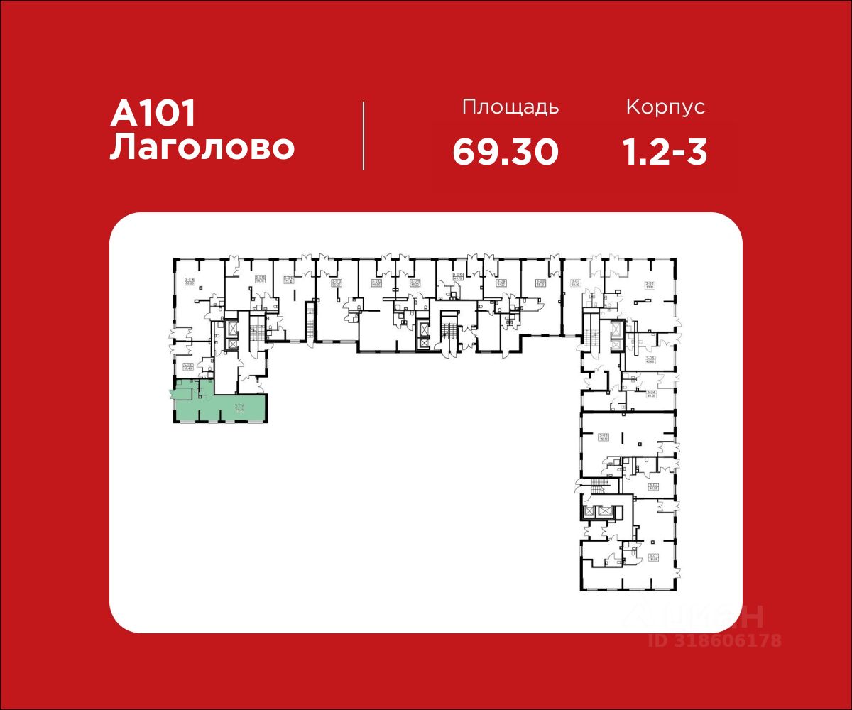 Продажа торгового помещения 69.30 м² в ЖК "А101 Лаголово" от застройщика. Опция "готовый арендный бизнес". Рассрочка на 12 мес. В 2025 году сдается первая очередь на 5.000 жителей. Дом 1.2-3, будет заселен в 2025 году.