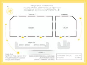 (съезд через новое четырёхполосное шоссе). Комплекс состоит из двух независимых зданий с возможностью объединения. Высокие потолки, подъёмные ворота, офисные блоки рядом с производственными зонами. Участок 0,5 га позволяет легко организовать движение транспорта, парковку, хранение. Новый съезд с КАДа, который обеспечивает удобный подъезд к ангарам.
