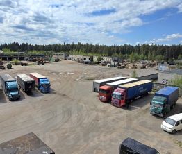 на участке есть кирпичные здания: административное 3000кв.м (3 этажа, 1988 год), диспетчерско-бытовой корпус, склады, ремонтные зоны, мойки машин, котельная;