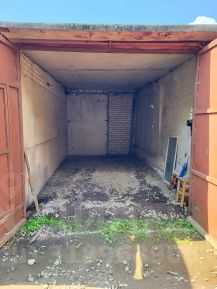 Гараж требует вложений (поднятие или замена ворот, разводка электрики, возможно герметизация крыши). Реальное состояние на фото.