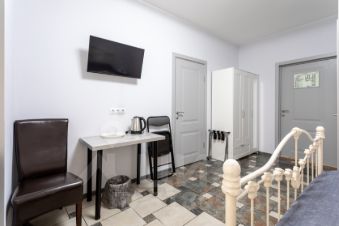 Миниотель разделен на 6 номеров, в каждом номере имеется санузел с душем, а так же все необходимое для комфортного проживания гостей. Организована зона ресепшена, кабинет для руководства, прачечная, доп. санузел для маломобильных граждан. Установлено видеонаблюдение, интернет, система охраны, пожаротушения. Электричество 36,2 кВт.