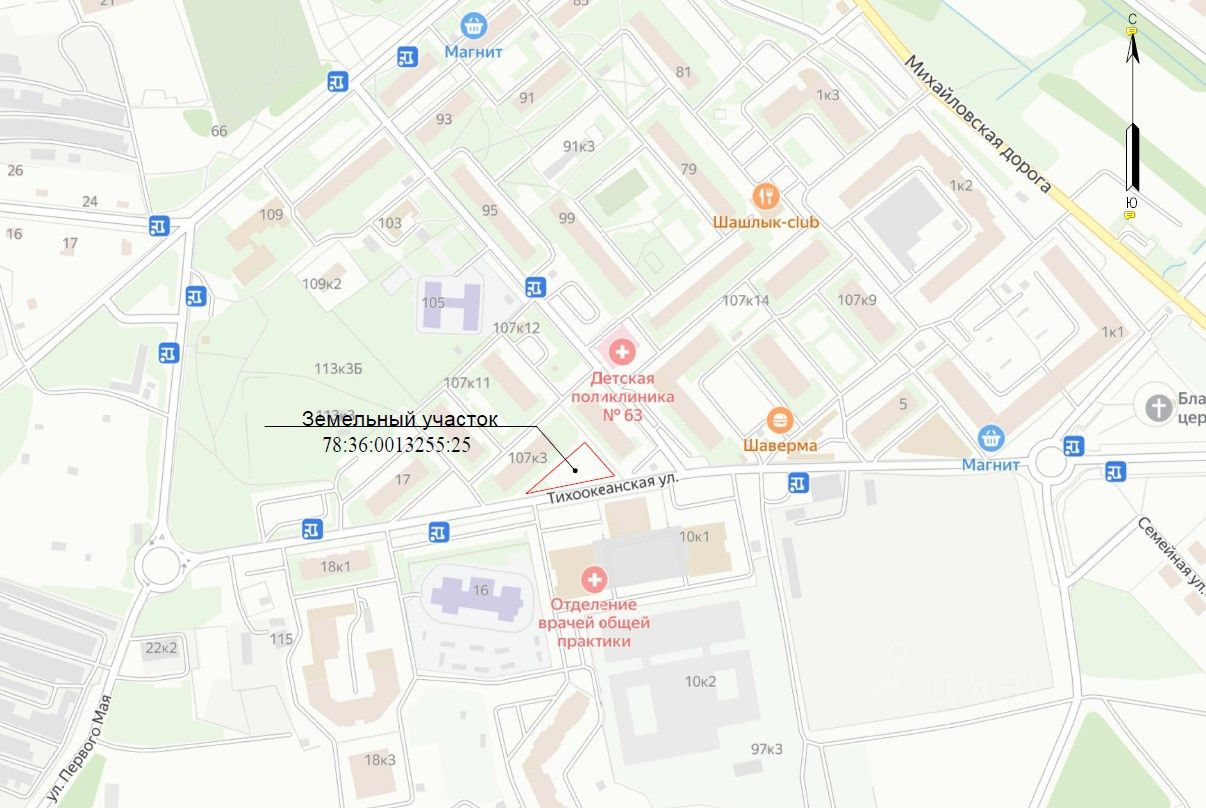 Продажа земельного участка площадью 935м2. Участок находится в территориальной зоне ТЗЖ2. Согласован внешний облик с функциональным назначение Комплекс бытового обслуживания. Здание бытового комплекса рассчитано на расположение в нем различных предприятий для оказания населению бытовых услуг. Здание двухэтажное. На первом этаже располагается открытая гостевая парковка на 11м/м., которую можно переоборудовать и использовать в полезную (коммерческую) площадь. Площадь объекта 770м2, без учета открытой парковки площадью 357м2. Въезд на участок расположен с Тихоокеанской улицы. Выполнено технологическое присоединение к электрическим сетям по 3-й категории (150 кВт), к централизованной системе холодного водоснабжения и водоотведения. Возможно технологическое присоединение к тепловым сетям и к сетям газоснабжения. Участок без обременений. Прямая продажа.