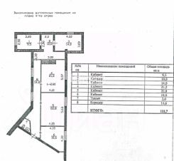Помещение размещается на четвертом этаже. Имеет 5 полноценных кабинетов (полезная площадь 84 кв.м.) с большими панорамными окнами. Установлено видеонаблюдение.