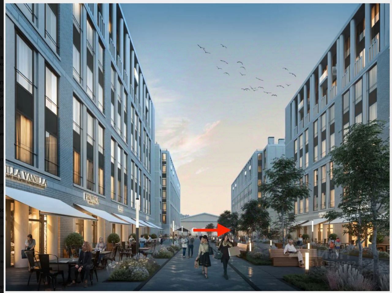 - выходит на пешеходный променад;