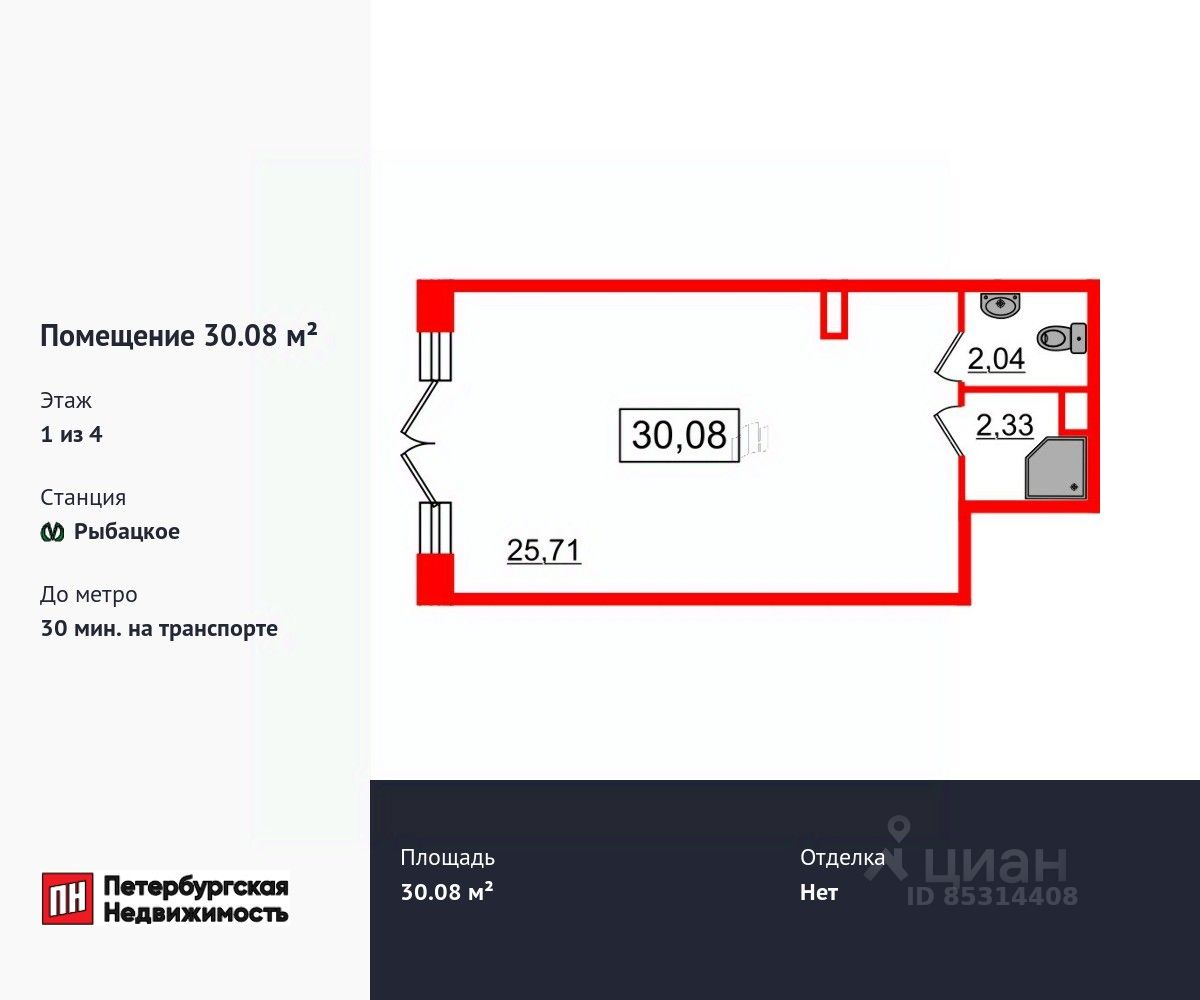 Продается помещение в ЖК Univer City площадью 30.08 м2. Помещение расположено рядом с метро Купчино. Расстояние до метро 30 Мин.на транспорте. Корпус сдан. Без отделки.
