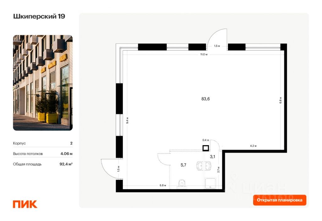 Продаётся нежилое помещение свободного назначения в новом жилом районе Шкиперский 19 от ПИК. Открытая планировка, витринное остекление, удобный вход на уровне земли. Помещение номер 3. Продажа напрямую от застройщика.