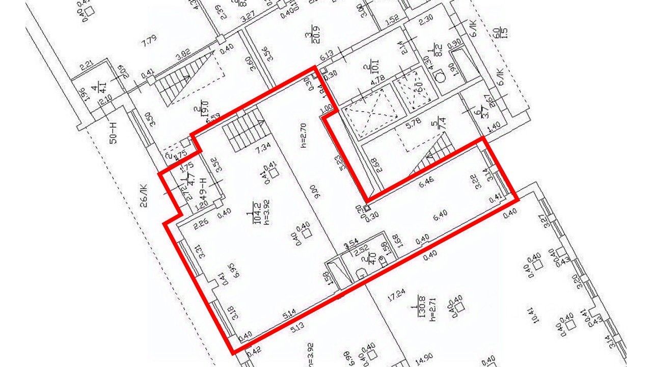 Помещение 108,2 кв.м. имеет отдельный вход, двухуровневое пространство 83,6 кв.м.(высота потолка 4 метра), отдельный кабинет 20,6 кв.м.(высота потолка 2,7 метра), а также санузел 4 кв.м. Помещение свободно от арендаторов.