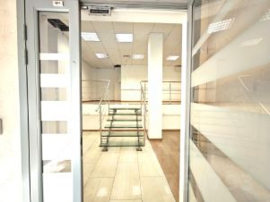 Помещение расположено на первом этаже и имеет витринные окна, фасады отделаны натуральным камнем, внутри выполнен офисный ремонт.