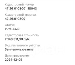 Преимущества данного участка с кадастровым номером 47:26:0108001:18037.