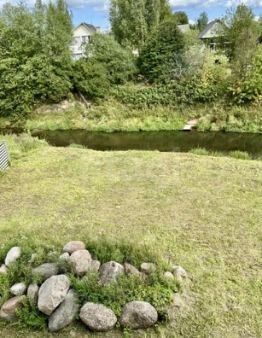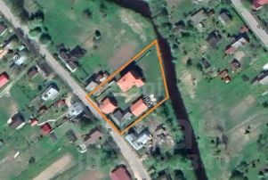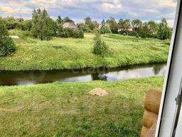Участок площадью 22 сотки + 8 соток береговой линии с четырьмя 4 домами общей площадью около 900 м² расположен в живописном месте на берегу реки Суйда в Гатчинском районе неподалеку от Вырицы.