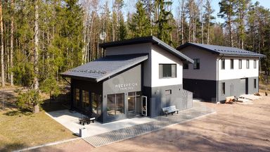 Отдельное здание ресепшена для приема гостей и кабинетом офисом на втором этаже.