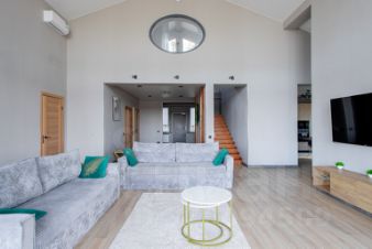 Три капитальных дома c дизайнерским ремонтом, полностью меблированы техникой и мебелью, в каждом доме своя сауна и терраса- площадью по 240 кв.м каждый. Есть купель пользующаяся особой популярностью.