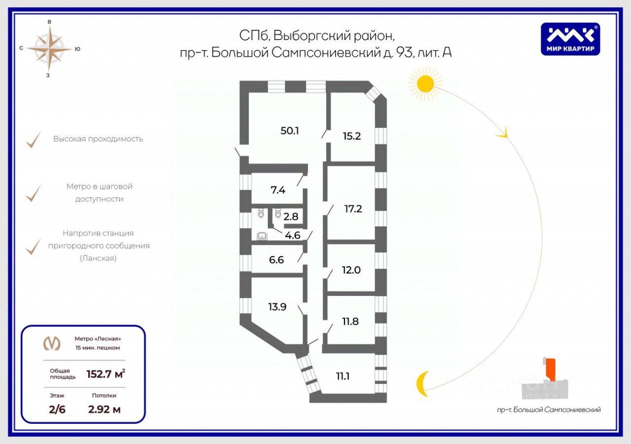 Арт. 111759263 Не упустите выгодное вложение или площадку для успешного бизнеса! Продается коммерческое помещение площадью 152.7 м² в исключительно перспективной локации на Большом Сампсоневском проспекте, 93.