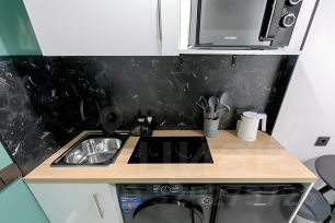 — Все апартаменты полностью укомплектованы техникой для удобства гостей — есть стиральная машина, телевизор, Свч-печь, фен, чайник.