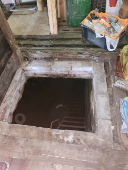 кирпич/газобетон. Сухая смотровая яма, имеется погреб, ворота уставшие, требуют замены или ремонта, крыша не течёт.