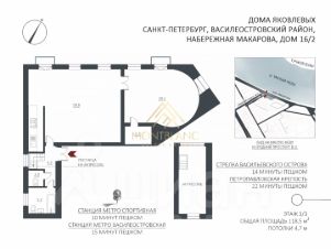 Вокруг — вся мощь исторического Петербурга: Стрелка Васильевского острова, Дворцовый мост, Петропавловская крепость, многочисленные учебные заведения, рестораны, бутики и вся инфраструктура премиального уровня.