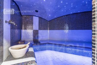 Здание Дворца спорта. В нём есть спорт-зал, бассейн, парная, хамам, кинотеатр, бильярд, барная зона и на втором этаже комнаты отдыха. На улице рядом с дворцом прекрасный пруд с лаундж-зонами!