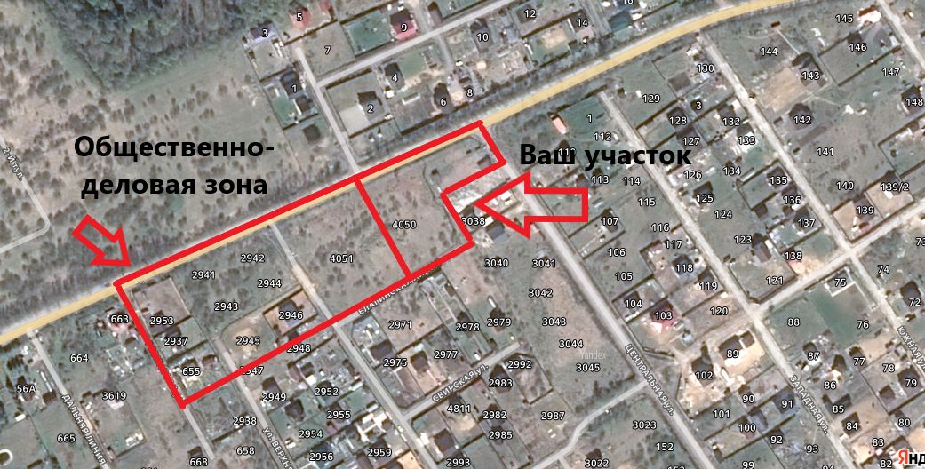 - Участок расположен вдоль дороги 41К-308 в активно развивающейся общественно-деловой зоне на перекрестие двух дорог