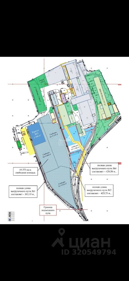 *Ж/Д пути: 3 ВЕТКИ, общая протяженность путей на участке 1265 м (с выездом на РЖД).