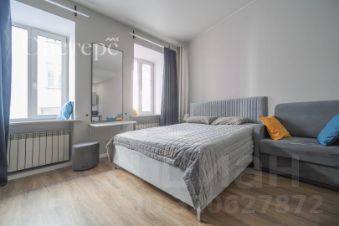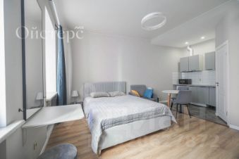 Общая площадь студии — 22.7 м², из которых 18 м² занимает жилое пространство. Выполнен качественный евроремонт, а высота потолков 3 метра добавляет пространству воздуха и свободы. Вся необходимая мебель, техника и оснащение остаются новому владельцу. Во дворе есть парковка.
