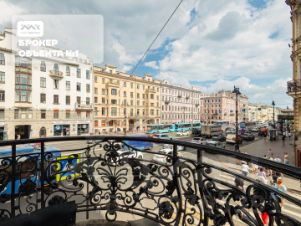 14 огромных фасадных арочных окон на Невский проспект и Рубинштейна, обеспечивающие отличную инсоляцию в просторных залах, увенчанных исторической лепниной в прекрасном состоянии. Лепнина не находится под охраной КГИОП. Высокие (4.30 м) потолки некогда барской квартиры на лучшем, втором этаже не оставят равнодушным никого. Неповторимый узнаваемый балкончик, выходящий прямиком на пересечение Невского и Рубинштейна, с которого открывается перспектива главного в городе проспекта.