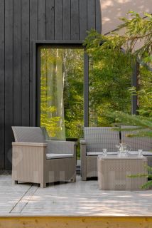 2-й и 3-й дома (идентичные) с одной спальней, кухней-гостиной и оборудованной террасой - комфортно вмещают по 4 человека