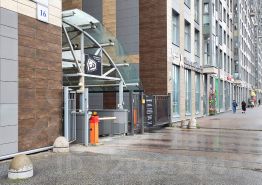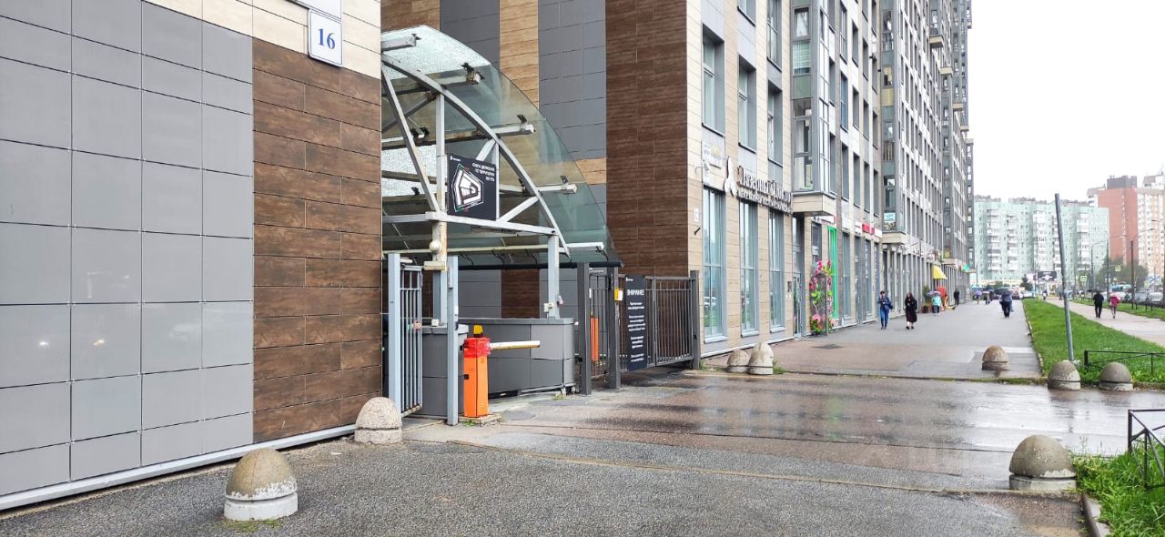 Въезд в паркинг с улицы Хошимина, в выезд на пр. Просвещения.