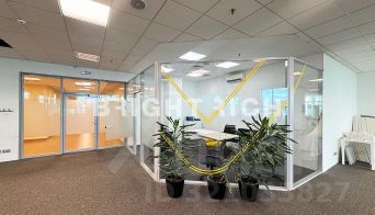 Формат — open space с выделенными кабинетами, переговорными и кухонной зоной, предусмотрены собственные санузлы. Планировка позволяет гибко использовать пространство под разные форматы бизнеса.