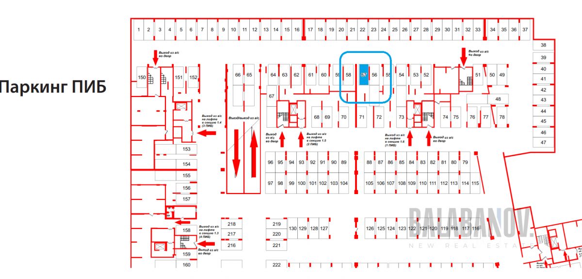 Подземный паркинг, этаж -1