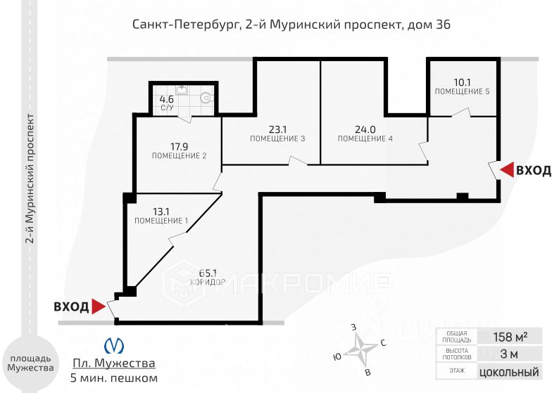 - 5 минут пешком до ст. м. "Площадь Мужества"